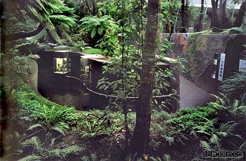 下陷的地形使觀眾從特殊角度欣賞森林景色