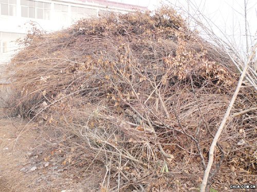 宋店鄉園藝良種場集中堆放的因雪災而死亡的各種花木