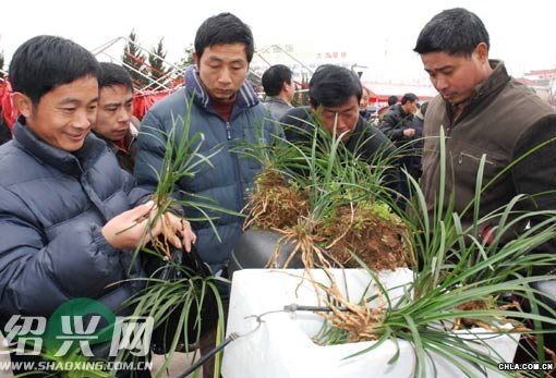 日前,在溫州舉行的全國蘭展上,嵊州市蘭農(nóng)選送的100多盆參展蘭花,有20盆分獲金、銀、銅獎。蘭展抱“金”刺激了當?shù)氐奶m市。圖為昨日蘭花愛好者在該市花鳥市場選購蘭花的場景。