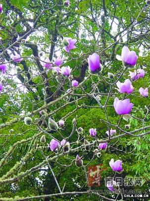 難道這就是傳說中盛開了千年的木蓮花?經(jīng)過永平縣旅游辦寶臺山管理所的工作人員細(xì)細(xì)地解釋,記者這才搞清楚,金光寺前的兩株木蓮花,是20多年前寺里的僧人從30公里外的寶臺山山頂移植來的。傳說中已經(jīng)盛開了千年的木蓮花,都在寶臺山山頂?shù)脑紖擦种校?000多畝成片分布的木蓮花,浩浩蕩蕩地盛開著,每株樹高都在30-40米,兩三個(gè)成年人才能合抱一株木蓮花樹。