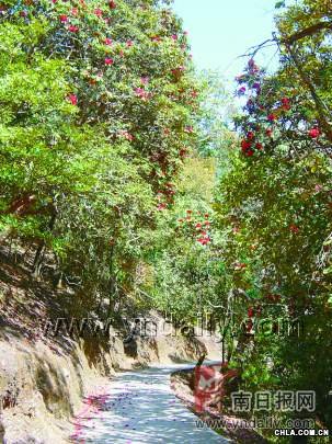 30多公里的路程,恰好是最適合野外探險(xiǎn)旅游的距離。每年都會有很多的野外探險(xiǎn)旅游者,背著帳篷、睡袋等野外探險(xiǎn)旅游必備設(shè)施,步行到寶臺山山頂,安營扎寨,與千年木蓮花相伴過夜。也有一些當(dāng)?shù)厝耍瑸榱艘挥[木蓮花奇觀,清晨從管理所出發(fā),當(dāng)天下午返回到管理所來的。遺憾的是,由于千年木蓮花所在的寶臺山山頂,原始叢林太過于遮天蔽日,到過寶臺山山頂觀賞木蓮花的人,都沒有能將1000多畝木蓮花連片怒放的奇觀拍攝下來。