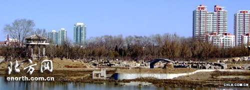 除綠化工程外,目前土建工程中的西門入口、覽勝軒、南屏山、覽勝游廊、江南人家、四座景橋的基礎設施也在緊張地進行。