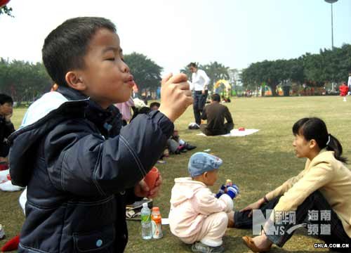 人們?cè)诤?谑腥f(wàn)綠園內(nèi)休憩(2008年2月20日攝)。