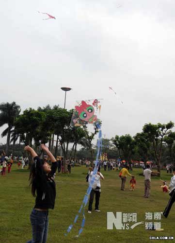 海口口市民在萬(wàn)綠園內(nèi)放風(fēng)箏(2007年11月16日攝)。