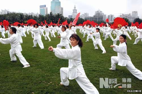 海口市民在萬(wàn)綠園內(nèi)健身(2007年11月16日攝)。
