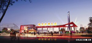 此次游樂園對南大門改建,以現代、歡快、活潑、美觀為主題,按照4A級國家景區的標準,采用非對稱式鋼架結構,在南門原址重新改造建設高9米、跨度為50米的現代風格大門,增強公益性綜合服務功能;在設計理念上,以鮮艷的“走紅”色彩和生動的“動感”形態,回應游樂園的場所“歡樂”精神,大門整體以流云的凹入曲線,形成懷抱、迎接態勢,朝向南通大街的伸展盡端,則表達升騰、飛躍之意,并對南通大街上的人流形成提示性視覺引導。大門的左側配有40㎡的全彩電子屏,進而使整個大門更具現代感,使其整體與周邊環境相協調,形成哈市新的標志性景觀和觀賞靚點。