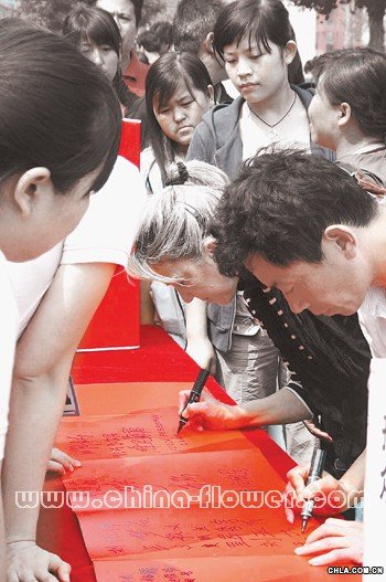 “愛心鮮花傳遞,援助遠方親友!”5月15日下午,北京萊太花卉市場舉行的賑災募捐活動吸引了眾多顧客和過往的行人,包括老人、兒童、還有外國友人在內的自發捐款人排起了長隊,大家紛紛慷慨解囊,現場氣氛熱烈感人,活動共募集捐款31.6萬元。江蘇常州市20余家花店也為災區捐款70多萬元。“大家的捐款行動是不約而同、發自內心的,我們只是盡自己的能力做一些事。”常州良友花店的張迪樸實的話語表達了最真摯的情感。