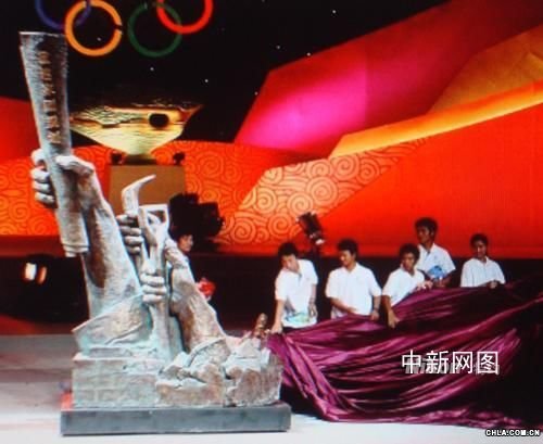 金獎作品分別為中國《高臺跳水》的作者宗明、《永恒的圣火》的作者田金鐸文增著田子陽、《同心協力》的作者孟德武和希臘《夢見五位勝利女神》的作者安托尼斯·麥洛蒂亞斯等5人獲得。其他9名銀獎,15名銅獎,50名“五環獎”的獲得者也是從奧運圣火珠峰登頂隊員、抗震救災英雄等平民偶像手中接過獎杯。