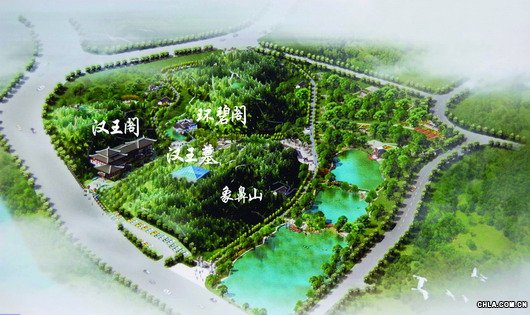 漢王墓:?jiǎn)?dòng)象鼻咀一號(hào)墓的修復(fù)工程,廣泛收集有教育、欣賞價(jià)值的文物仿真品、照片及有關(guān)歷史資料,宣傳布展,擴(kuò)大影響,形成現(xiàn)場(chǎng)觀瞻景點(diǎn)。在墓坑遺跡上修建保護(hù)建筑。墓四周設(shè)道路、休息小廣場(chǎng)、墓葬說(shuō)明石碑。山頂結(jié)合祭祀功能設(shè)置觀光回廊、祭祀廣場(chǎng)等。