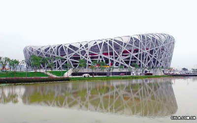 “鳥巢”位于北京奧林匹克公園內,占地21.4公頃,建筑面積25.8萬平方米,南北長333米,東西寬298米,高68米,賽時坐席9.1萬個。作為目前世界上跨度最大的鋼結構體育建筑之一,“鳥巢”外部鋼結構達4.2萬噸。北京奧運會開閉幕式、田徑比賽及足球決賽將在這里舉行。
