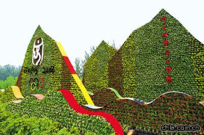 ① 奧運期間北京市將動用4000萬盆奧運花卉,預計整個擺放工作在7月15日完成。花卉布置將形成兩區花港、三線花廊、五環花帶、六類花境、百座花園的花卉布置格局。圖為位于北京東四環的花卉造型。