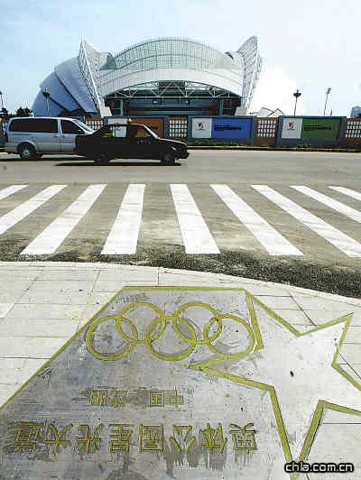 ③ 7月7日,奧運分賽場沈陽奧體中心體育場周邊6.5平方公里的沈陽奧林匹克公園主要工程項目全部竣工,并正式對國內外游人開放。這是沈陽奧林匹克公園的星光大道。