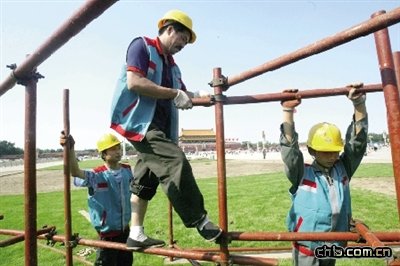 昨天是天安門廣場擺花的第一天。當天下午,人民英雄紀念碑前搭起數十米長的鐵架子。北京城建集團花木公司負責人介紹,由于今年北京經常下雨,一旦遇上暴雨,施工就只能停止,工期非常緊張,全部花壇布置工作將于本月底完成。