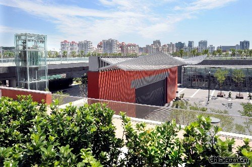 奧林匹克森林公園中心區下沉式廣場的南門(7月6日攝)。新華社記者王頌攝