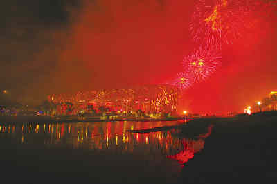 7月16日夜晚,五彩焰火點(diǎn)亮了北京夜空,“鳥(niǎo)巢”內(nèi)外燈火璀璨。燈光焰火映襯下的“鳥(niǎo)巢”顯得更加動(dòng)人。