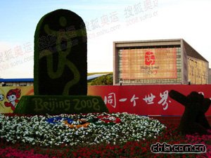 景觀“歡聚”以五色花為主要植物材質(zhì),結(jié)合適當?shù)?a href="http://plant.m.kstxie.cn" target="_blank" title="植物">草花完成立體花壇的形態(tài)。北京2008字體和中國印造型,以及不同的運動人物造型充分展現(xiàn)了奧運精神,五環(huán)圖案及花卉的擺放迎合立體花壇,加上不遠處樓體上奧運的宣傳內(nèi)容,形成一幅優(yōu)美的畫卷。