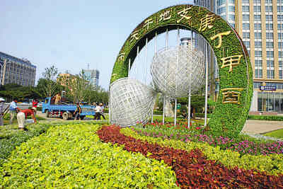以天干地支紀年法為主題的奧運花壇,出現在東單路口。