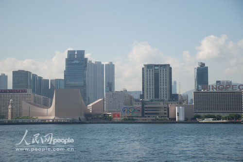 從香港國際會展中心望去,對面的奧運五環非常引人注目。