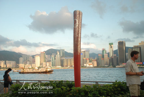 位于西九龍文化區的奧運火炬模型倍受游客關注。