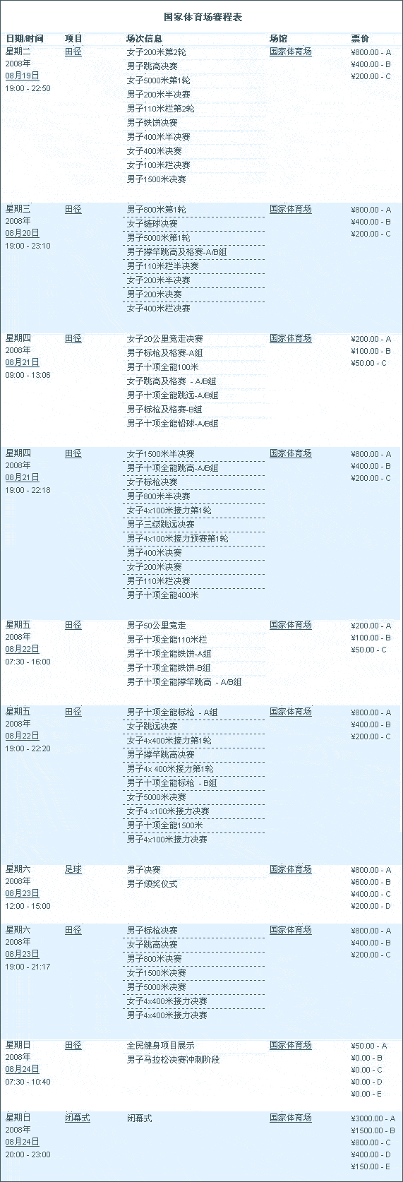 奧運場館追蹤:國家體育場賽程表(組圖)