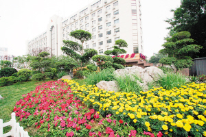 繼續前行,新開路營門口綠地出現在記者面前,這片綠地目前已成為迎奧道路上的一道風景。綠地在設計時,根據原有地形特點設置了起伏,配有景石、甬路、樹陣廣場等多種小品形式,層次感突出。據了解,綠地共種植各種花卉33000余盆,栽植灌689株、喬木308株。
