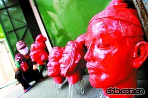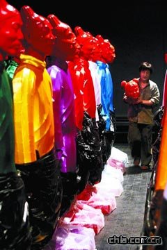 北京兵馬俑燈點亮奧運文化廣場(組圖)