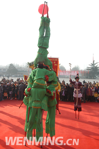 2月9日下午,中國(guó)非物質(zhì)文化遺產(chǎn)傳統(tǒng)技藝大展開幕式在全國(guó)農(nóng)業(yè)展覽館舉行。圖為開幕式上的國(guó)家級(jí)非物質(zhì)文化遺產(chǎn)中國(guó)遼寧海城高蹺秧歌表演。 中國(guó)文明網(wǎng) 王嘯 攝