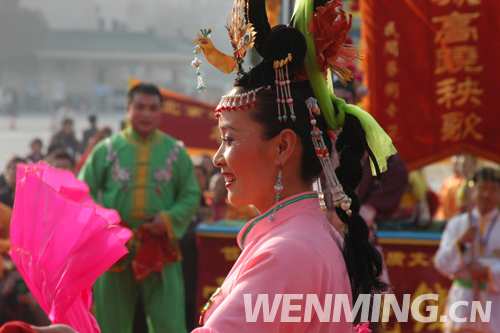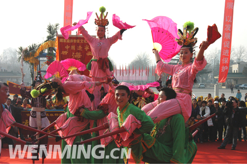 2月9日下午,中國非物質文化遺產傳統技藝大展開幕式在全國農業展覽館舉行。圖為開幕式上的國家級非物質文化遺產中國遼寧海城高蹺秧歌表演。 中國文明網 王嘯 攝