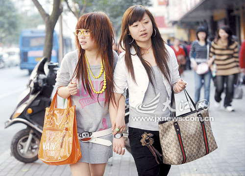 12日中午,在南昌市勝利路步行街,記者看到逛街的市民信步在明媚的陽光下,但穿著五花八門。有人穿棉襖,有人穿棉毛衫,也有愛美的姑娘開始穿短裙。兩個俊俏的姑娘,在其他女孩還是棉衣加身時,她們卻用短袖應對春日的陽光,以顯其窈窕身姿。她們一邊享受著褪去冬衣的輕、靈活及時尚,一邊揮灑著青春的活力與朝氣。在陽明公園,多數老年人穿的是則是薄棉服,怕冷的依然穿著羽絨服。