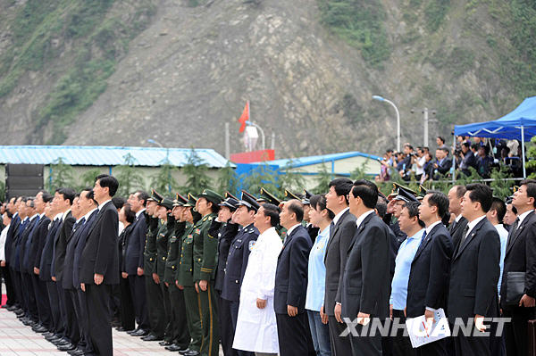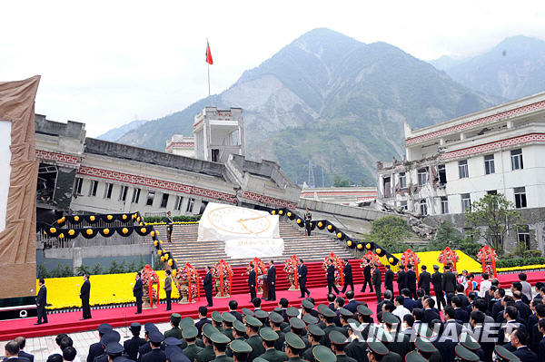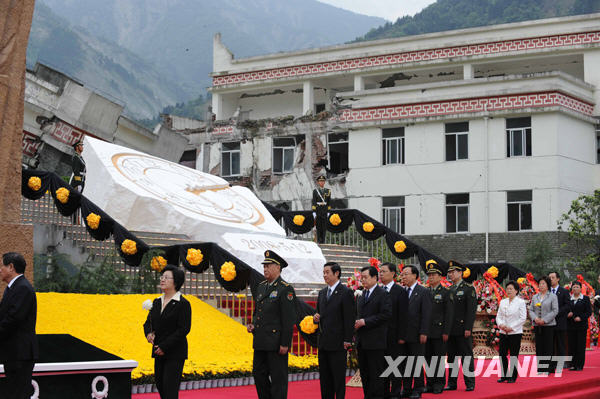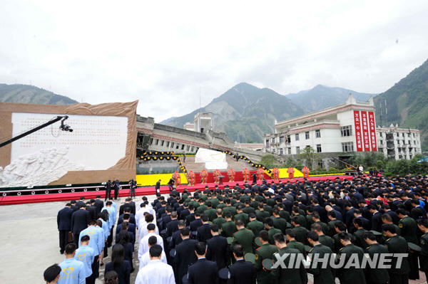 5月12日,紀念汶川特大地震一周年活動在四川省汶川縣映秀鎮隆重舉行。新華社記者丁林攝