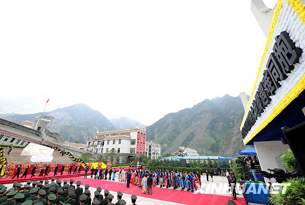 5月12日,紀念汶川特大地震一周年活動在四川省汶川縣映秀鎮隆重舉行。新華社記者饒愛民攝