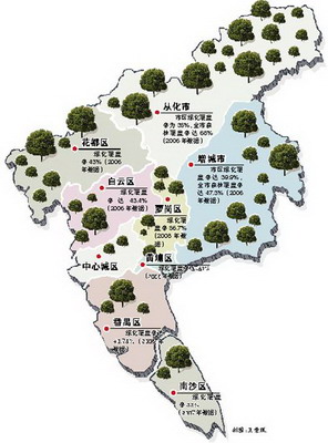 廣州綠化率數據與現實“貨不對板”的感覺還來源于廣州綠地資源分布不均衡。據廣州市林業局的調查,廣州北部山區林木參天,植物種類占全市總數的85%以上。