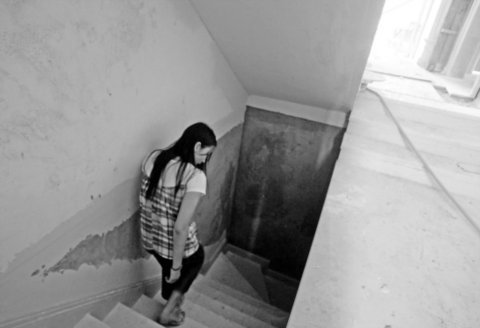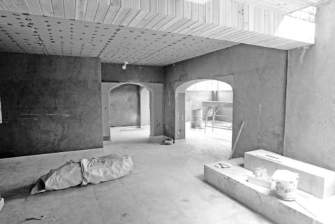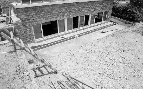 記者繞到后門,看見門右側(cè)有一個(gè)樓梯。樓梯內(nèi)光線很暗,記者小心順著樓梯拾階而下。樓梯盡頭,光線突然由暗變明,一個(gè)約百平方米的地下室赫然呈現(xiàn)在眼前。地下室入口處砌著一個(gè)水泥臺(tái),兩側(cè)墻壁上裝著五扇玻璃窗。記者貓著腰走進(jìn)去,看到里面的房間一個(gè)連著一個(gè),別有洞天。走到門口左側(cè),有一個(gè)類似于吧臺(tái)形狀的弧形建筑。這大概是業(yè)主想要在地下室開PARTY用的吧。