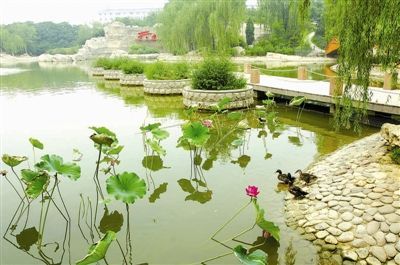 百余種花卉品種、40多萬株灌木、百萬平方米的綠地、帶來了四季有景的奇觀;30多只野鴨安家落戶,于是“野鴨島”就此誕生;自然良好的循環(huán)系統使環(huán)島的湖水清澈見底,湖中是悠然自得的魚兒,湖面是嬉戲追逐的野鴨。今天的天通苑將昔日的荒郊建成了一座新城,將昔日的荒野改造成生態(tài)的樂園,這里將成為天通苑的孩子第一本成長的“生態(tài)教科書”。
