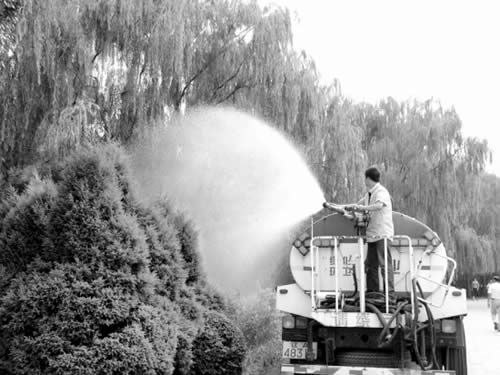 氣溫持續偏高,而且近半個月沒有降水,提起沈城綠樹的干渴情況,市城建局園林處副處長田偉顯得十分焦急。田偉告訴記者,周一開始,全市就整合了所有水泵、綠化水車、環衛灑水車等具有澆水設施的車輛,全力對城市園林實施抗旱澆水。截至昨日下午4時,全市共出動綠化專用水車114輛、2052臺次,為樹木澆水16416噸。澆樹用水都在渾河與運河就近取水,對沈陽市居民用水和城市用水不會產生任何影響。