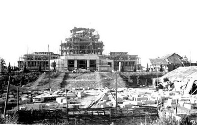 上世紀五十年代正在修建中的烈士公園烈士塔。(市城建檔案館供圖)