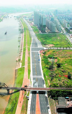 2001年以來,長沙先后建設了湘江風光帶、瀏陽河風光帶、靳江河風光帶、圭塘河風光帶等沿江沿河風光帶,不僅為市民親水創造了很好的條件,也成為長沙城市綠景。圖為瀏陽河風光帶一段。