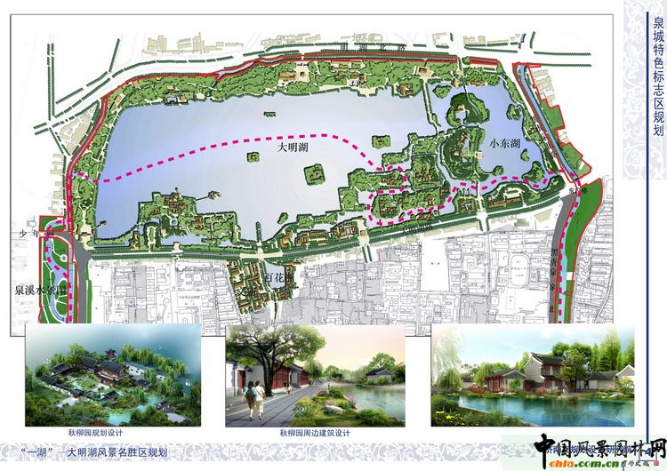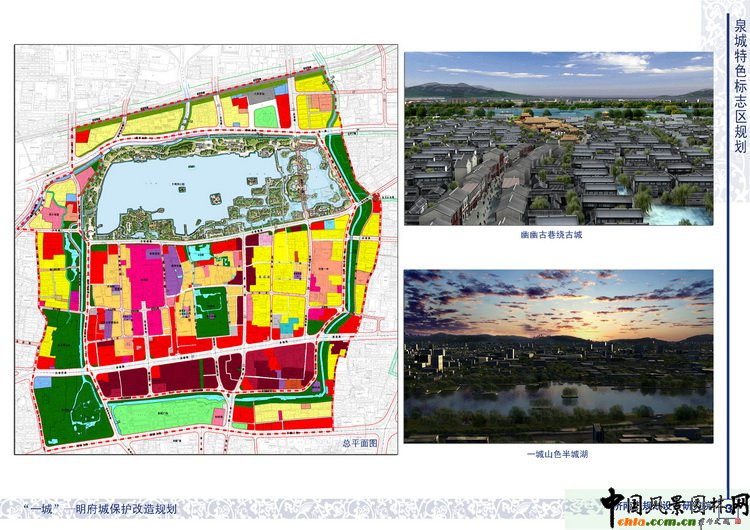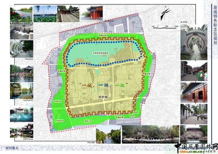 整體保護規劃確定了明府城、大明湖、環城公園 “一城、一湖、一環” 的保護整治改造重點, 打造特色鮮明、功能完善、環境優美的泉城特色標志區,再現 “幽幽古巷繞古城,處處清泉伴人家”的城市意象。