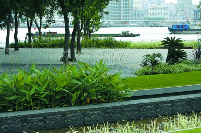 昨天下午,記者踏進世博公園內,但見綠意盎然,親水平臺邊,涼風習習,江上船只往來,不過沒有感受到“中國扇”的框架。“這是‘只緣身在此山中’的緣故,如果站到盧浦大橋等高處就能清晰地看出扇形地形和灘的感覺。”公園建設人員指著眼前筆直的樹陣揭開了其中的奧秘。由荷蘭Nita公司和上海園林設計院聯合設計的世博公園設計靈感來源于中國扇和上海灘,大型喬木充當了扇骨,一撮撮地被植物則組成了一個個“灘”。