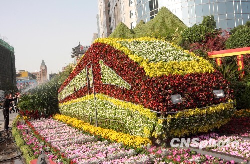 圖文:北京王府井大街“高速列車”立體花壇