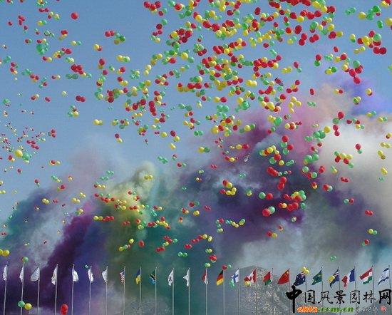 園博會(huì)開(kāi)幕 彩霧、氣球齊飛(圖)