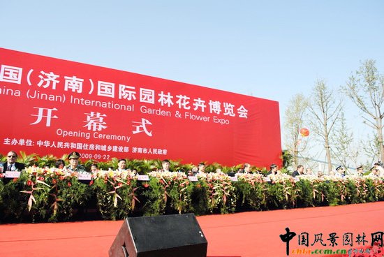中國風(fēng)景園林網(wǎng) 期盼已久的第七屆中國(濟(jì)南)國際園林花卉博覽會(huì)終于拉開帷幕,9月22日上午,在熱烈祥和的氣氛下,濟(jì)南園博園泉韻廣場舉行了盛大的園博會(huì)開幕儀式。