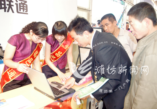 一位參加綠博會的苗木客商正在使用中國聯(lián)通WCDMA無線上網(wǎng)查詢資料。9月21日,2009中國北方綠化博覽會、第十四屆中國園林花木信息交流會在山東昌邑綠博會舉行,昌邑聯(lián)通員工來到會場為廣大客商提供包括3G業(yè)務(wù)在內(nèi)的綜合信息服務(wù),受到歡迎。