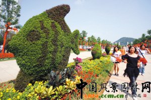 10月2日,一群學生從幾組魚造型的模紋花壇旁走過。國慶期間,臺州市第四屆園藝展覽會在這里“盛裝”上演。30多個包括“國慶號”帆船、F1賽車、馬、魚在內的模紋花壇,100多盆精品盆景,上百個紅燈籠,還有紅色景觀花……市園林部門把市民廣場裝扮成了花的海洋、歡慶的世界,慶祝新中國成立60周年。
