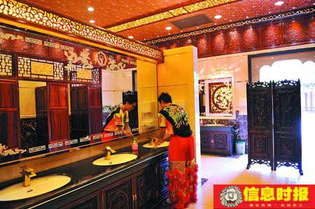 對于造價是否過高,南粵苑相關負責人表示。以前,寶墨園里的皇家園林深受游客歡迎chinaren,所以我們把皇家園林這個概念提升,單獨打造了南粵苑。以前皇家園林都有用真金箔貼的。為此,我們用真金貼,讓老百姓真正感受到皇家的生活天龍八部,而且黃金保存時間很長。打造超豪華廁所的初衷是中國的洗手間在老外心目中經常是又臟又臭的,我們想打破此印象,做一個有中國特色的豪華廁所圖行天下,讓中國的老百姓和外國人刮目相看。