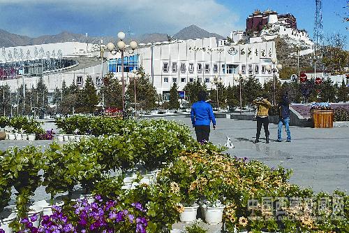 拉薩市園林綠化科負責人介紹,冬天鮮花在戶外難以成活,從11月5日起,他們已開始對拉薩市內各主要街道和公園的景觀進行“換裝”,全部換上不怕嚴寒的仿真花。目前,除了布達拉宮廣場和大昭寺廣場的菊花還能抵擋一陣寒風,其它鮮花將陸續換成仿真花,這項工作將持續到明年開春時節。