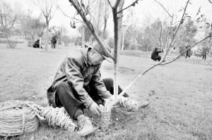 人民網·天津視窗11月10日電:冬季來臨,河東區市政園林局公園管理所加快了對園林植物防寒養護工作的進度,自10月下旬起,已著手準備購置各種防寒材料,防寒工作正在有條不紊地進行,植物防寒養護面積達14萬平方米,所有植物防寒養護工作將于11月中旬完工。