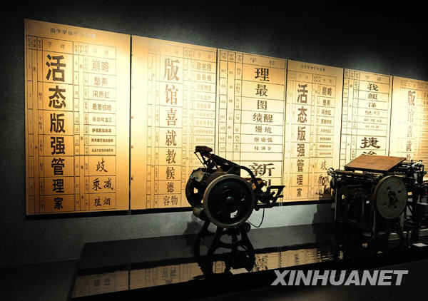在中國文字博物館“活字印刷”展區,擺放著的上世紀中期的老式印刷設備。