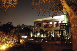 襄陽公園里的餐廳,餐廳搭建的親水平臺疑為違章建筑。早報記者 趙靜 圖