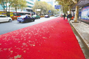 三中路總共設了30個港灣站,公交站臺上方全部安裝電子站牌,這些電子站牌在GPS定位指引下,滾動預報途中公交車到站的距離,供市民選擇乘車;港灣島鋪上環(huán)氧樹脂材料的“紅地毯”,防滑又耐壓,還能引導公交車靠站停車。
